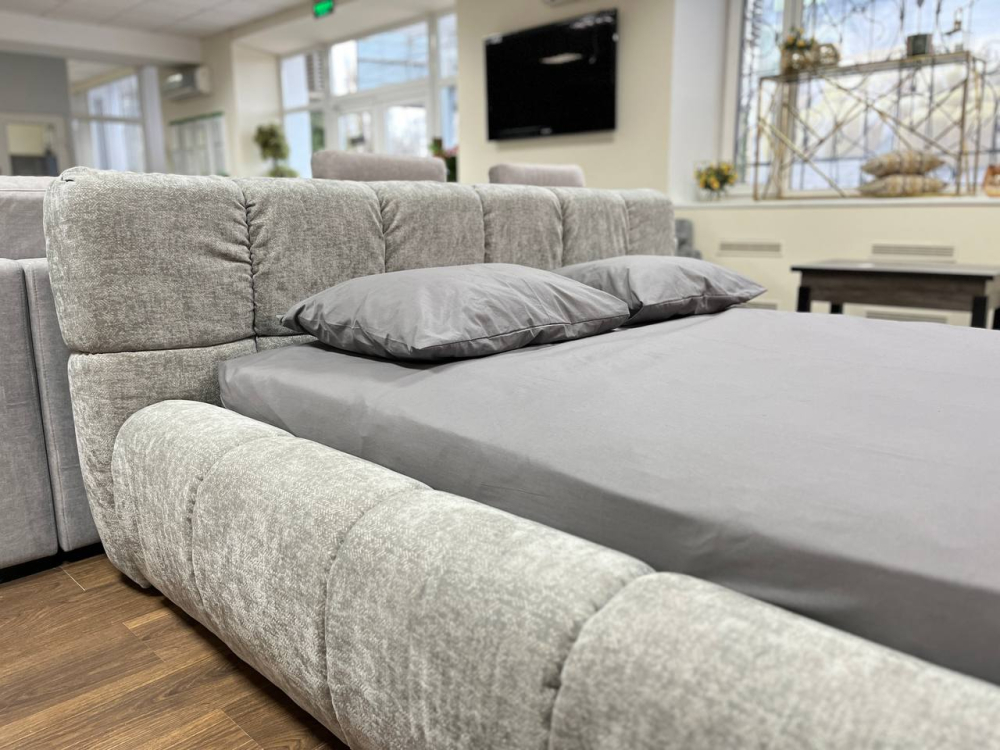 Сучасний дизайн ліжка Квадро сподобається покупцям. Стильне низьке узголів'я, округлі форми, м'який текстиль - все так і сприяє відпочинку.